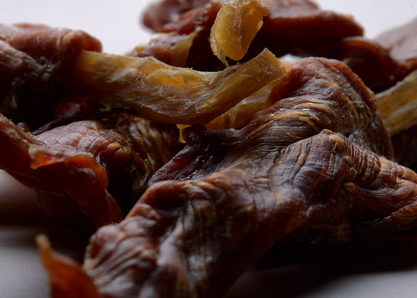 Crunchy edible tendon for dental health, an excellent source of collagen and calcium.